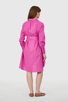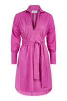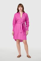 The dress version of our best selling Jane top! The Jane dress features a flattering v-neck, standing collar, and an overall relaxed fit. She has a sash belt that can be removed for easy styling!