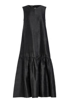 The Evening Dress features an elegant sleeveless silhouette and a refined midi length. The bow tie closure at the back adds a touch of femininity while the drop waist and A-line skirt create a graceful, elongated shape. This evening dress is perfect for formal occasions, offering an elevated, timeless look.