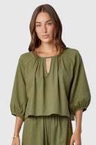 The Travel Top was designed with comfort and style in mind. It's all in the details with it's quarter length loose sleeves, keyhole neckline and contrasting trim. We love making it a matching set with our Travel Pant or pairing it with your favorite cut-off jean shorts.