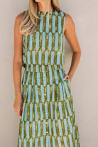 The Scout Skirt is a high-waisted, A-line silhouette with a flattering midi length. It features a button-front closure, wide waistband, and soft pleating for added volume and ease. Side pockets add a functional touch, making it as practical as it is polished.