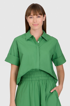 New this Spring, the Club Shirt will quickly become a staple. This effortlessly chic piece features folded sleeves and a flattering cropped cut that elevates any look. Whether paired with the Pavilion Skirt as a set or worn solo, it is the perfect balance between polished and relaxed, making it an ideal choice for warm weather styling.