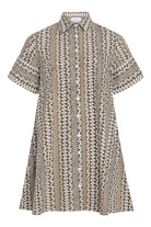 The Dock Dress is a short-sleeved, button-down mini shirt dress with a relaxed, A-line silhouette. The structured collar and full-length button placket give it a classic, tailored feel, while the loose fit adds an effortless, easygoing charm. Pair back to your favorite sandals!
