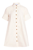 The Dock Dress is a short-sleeved, button-down shirt dress with a relaxed, A-line silhouette. The structured collar and full-length button placket give it a classic, tailored feel, while the loose fit adds an effortless, easygoing charm. Pair back to your favorite Summer sandals!